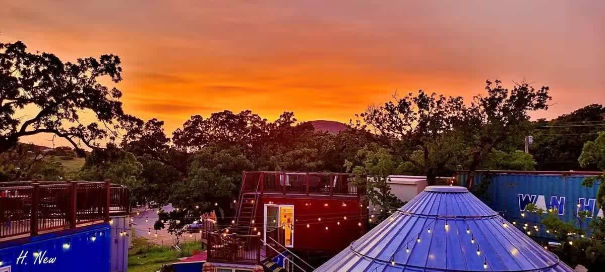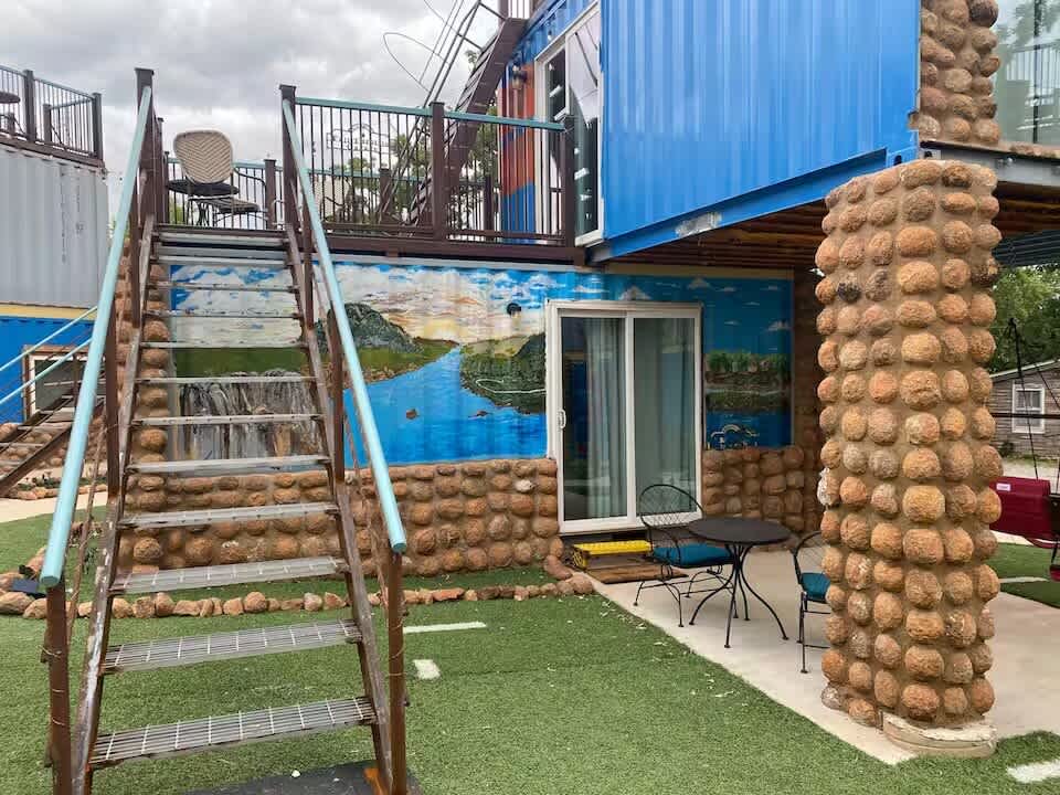 A River Runs Through It sleeps 2 1BR/1BA - 1 bed. Smart TV, WiFi, private patio with hammock chairs, access to grain bin gazebo + grill. 5 min walk to Bath Lake, shops, restaurants, and trails; 10 min drive to Fort Sill. Ideal for couples, solo travelers, or graduation visits. Unique mountain view resort setting at InnHabit. Comfortable base for exploring the Wichita Mountains.