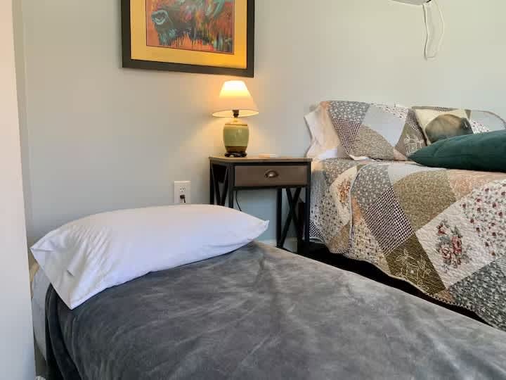 Prairie Life Medicine Park Tiny House — Sleeps 3 (1BR/1BA; queen + twin chair). Wheelchair accessible / ADA, walk-in shower, kitchenette, Smart TV & WiFi. Private patio with grill access plus gazebo gathering space. Walk to shops, Bath Lake swimming, trails, and restaurants; 10 min to Wichita Mountains Wildlife Refuge, 15 min to Fort Sill. Perfect for graduations, couples, or small families. Stay at InnHabit, Medicine Park’s gathering place. Hiking trails and fishing spots are just steps away.