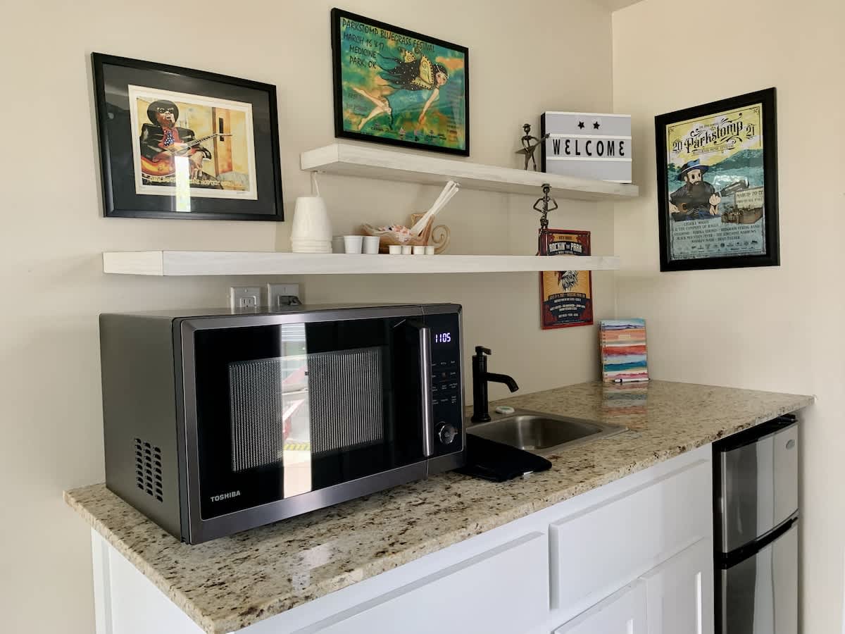 InnHabit offers one reserved parking spot per tiny house. We are within an easy walk to all that Medicine Park offers, including shops, restaurants, swimming, hiking and biking trails, kayak launch areas, and fishing. So park at InnHabit and explore our town on foot!