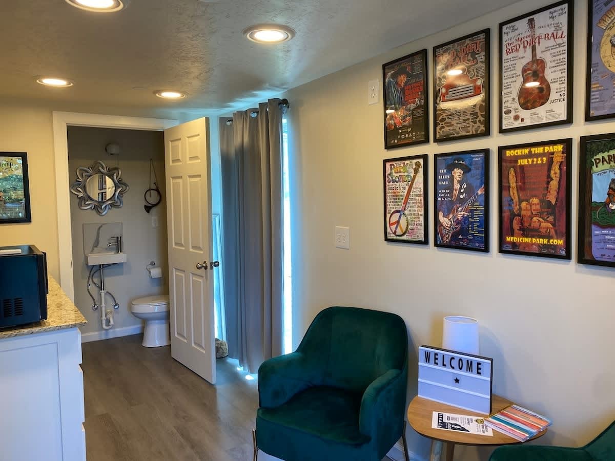 Welcome to InnHabit – Medicine Park’s one-of-a-kind tiny house village built for unforgettable memories, big laughs, and cozy vibes!